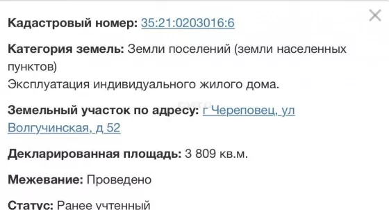 Подробнее об объекте на СИТО.рус - Лот № 244756 Участок 38 соток на два хозяина по 1/2(право аренды,без права перевода в собственность). На участке дом в собственности на два хозяина по 1/2( дом ценности не представляет). Коммуникации электричество. Возможен обмен на авто или недвижимость. Кад.номер участка 35:21:0203016:6