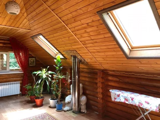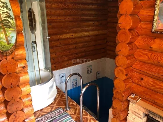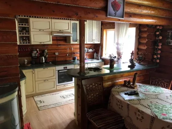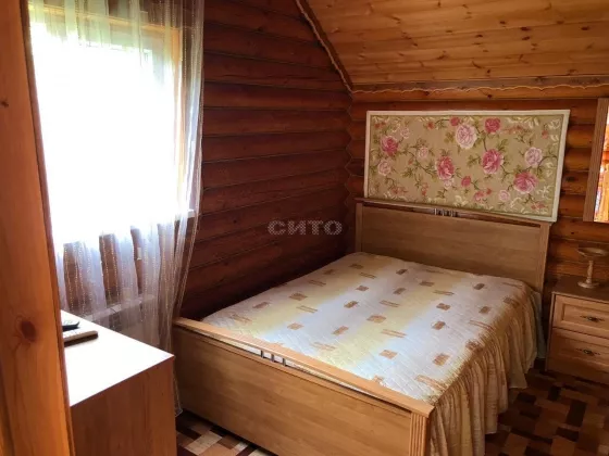 Предложение предоставлено каталогом СИТО.рус Лот № 244874 Продам деревянный дом-сруб из экологически чистых материалов. Дом находится в собственности 10 лет. Общая площадь дома 196,8 кв. м; жилая площадь 84,7 кв. м. Цокольный этаж: гараж, подсобная мастерская, котельная. 1 этаж: 2 веранды, баня на дровах с бассейном, кухня, столовая, санузел, гостиная, прихожая. Мансарда: гостиная, 2 спальни, ванная комната, балкон и лоджия. Свет, вода, отопление, септик. Уход за бревном проходит должным образом, все необходимые пропитки производятся раз в 4 года профессиональными мастерами, состояние дома отличное. На участке расположена большая беседка вместимость 12-15 человек и мангальная зона. Так же имеется мастерская и сарай/дровяник. Двор ухоженный, много растительности, плодовых деревьев, вдоль участка протекает ручей, очень чистый воздух, вокруг лес. На машине 10 минут езды и вы уже в черте города. Дом продается со всей мебелью, техникой и инструментом, все вопросы по телефону. Торг. Рассмотрю варианты обмена на недвижимость.
