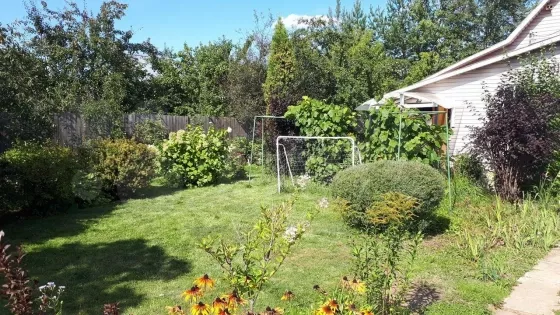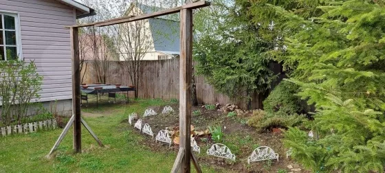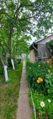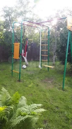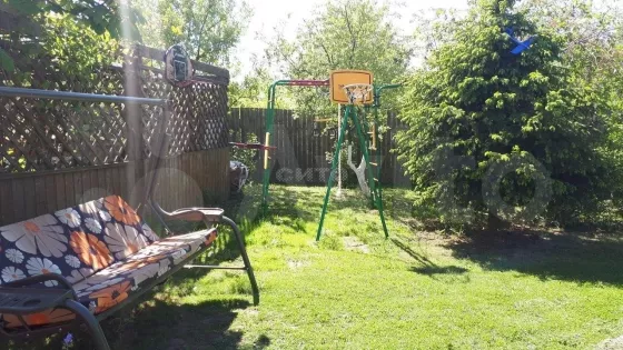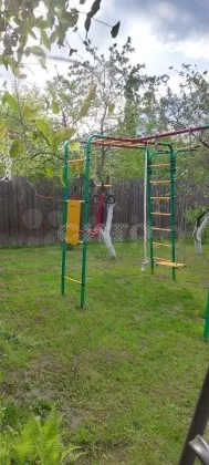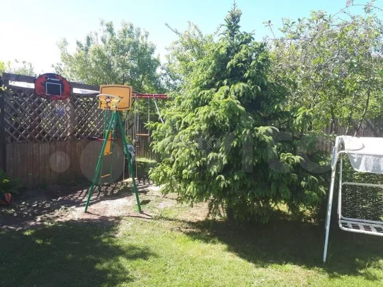 Участок правильной прямоугольный формы, обустроен, спланирован и ухожен. На участке много плодовых деревьев (груши, яблони, сливы, вишня и черешня, абрикосы) и кустарников (малина, ежевика, смородина черная/белая/красная, крыжовник, жимолость), имеется грядки с клубникой, а также красивые туи, ели и березы, каштан и другие деревья. Много различных многолетних цветов. Имеется детская площадка со спортивным комплексом, а также площадка для уличных игр (волейбол, бадминтон и тп), уличная терраса с крышей, столом и местом для барбекю. Участок по периметру огорожен сплошным деревянным забором, что сделает ваш отдых тихим и спокойным, с фасадной стороны забор из профлиста со столбами, калиткой и въездными воротами (парковка на 3 машины).