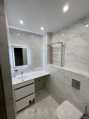 Санузел выполнен «под ключ» с использованием дорогой итальянской сантехники и стильной инсталляции.