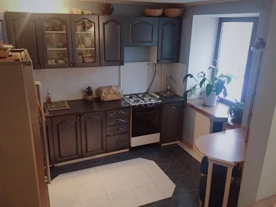 Кухня совмещена с комнатой образуя уютную кухню-гостиную. Из большой комнаты выход на большую лоджию.