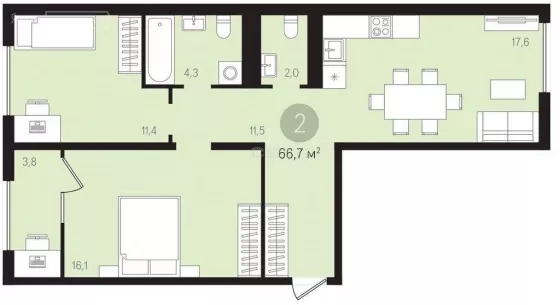 в реестре СИТО Лот № 265680 Продается двухкомнатная квартира с объединенной кухней-гостиной и двумя спальнями общей площадью 66.7 кв.м:
