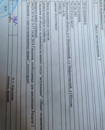 Лот № 240145 Продам участок в д. Обухово, площадью 395 кв. м. Не разработан. Рядом ЛЭП. Зимой дорога чистится. Возможно увеличение участка. Торг.
