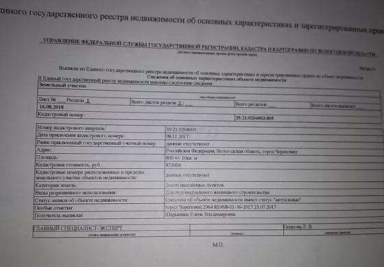 Лот № 240172 Продам земельный участок в черте города в пяти минутах от ул. Олимпийская. Проводится свет и газ. подъезд круглый год.участок 800 кв.кадастровый номер 35:21:0204003:805